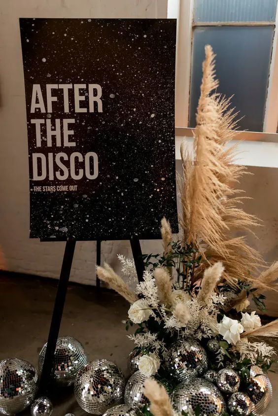 Quel que soit votre thème de mariage, la boule à facettes sait s’y adapter. Dans la team Petit Mariage entre Amis, on avoue tout de même notre faible pour les ambiances « disco mountain » dans lesquelles elle s’associe à merveille aux fleurs des champs, aux guirlandes lumineuses et aux décors ultra natures.