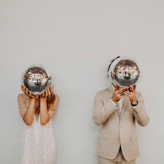 Posée dans un coin, tenue dans les mains… autant de possibilités d’utiliser la boule à facettes pour vos photos de mariage. Dans tous les cas le résultat est superbe et original. Mention spéciale pour les clichés pris en fin de journée, au moment de la golden hour. On ne résiste pas à cette lumière dorée qui se reflète sur toutes les facettes. Encore des wahouuuu garantis à la découverte des photos.