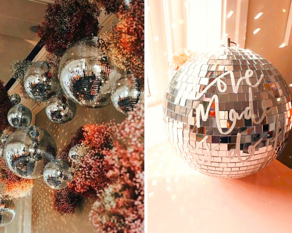 - Les boules à facettes sont parfaites lorsqu’elles sont suspendues au-dessus de vos tables de dîner ou de la piste de danse.