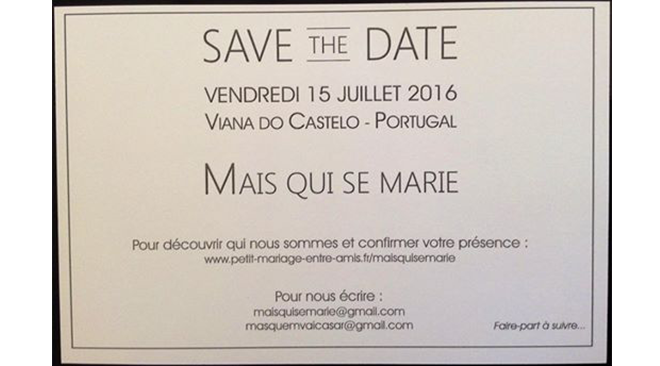 Nous communiquions avec nos invités grâce à 3 outils précieux : notre site Petit Mariage entre Amis (bilingue Franco-Portugais), une page Facebook et une adresse mail sous le mystérieux nom « Mais qui se marie ? ». Nous avons commencé notre amusant petit jeu des devinettes deux ans à l’avance. D’abord en postant des photos de nous sur le lieu du mariage au Portugal et dans différents endroits symboliques à Paris, puis au travail de mon mari (il est pilote) en prenant soin de disséminer des indices pour mettre nos convives sur la voie. Ce sont ensuite nos parents qui ont écrit quelques mots sur nous pour aider les gens à nous identifier. Nous avons aussi partagé les préparatifs de notre mariage via des photos de nos séances de travail avec Magali sans jamais dévoiler nos visages. Ceux qui nous démasquaient nous écrivaient un petit mail et nous leur faisions parvenir l’invitation officielle et l’accès à toutes les informations sur le Jour J. Certains ont mis peu de temps à percer notre secret, d’autres, par contre, ont galéré ! Mon oncle, par exemple, pas très copain avec internet, a jeté notre save-the-date (qui était une carte postale) en croyant à de la pub et n’a pas du tout deviné que c’étaient nous qui allions nous marier ! Mais au final, à force d’indices de plus en plus faciles et avec l’aide du bouche-à-oreille, la quasi-totalité de nos 120 convives était au courant une semaine avant le grand jour.