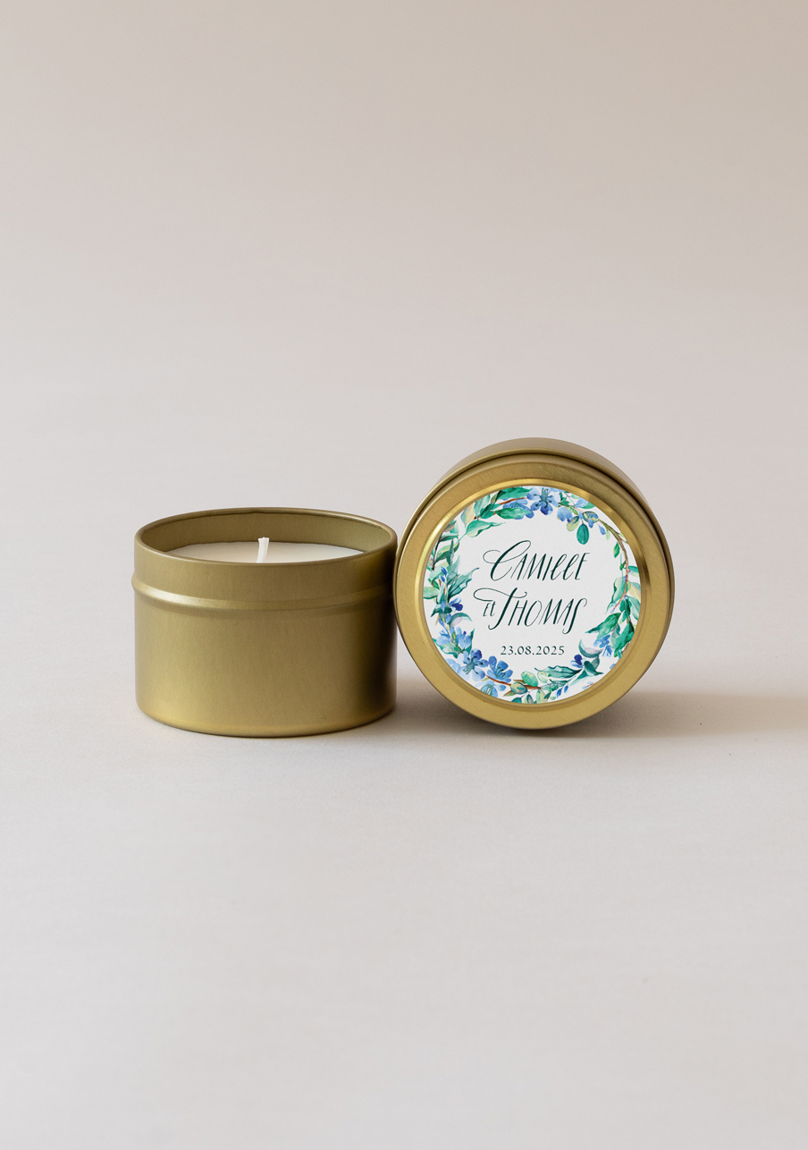 Bougie de mariage personnalisée apothicaire Fleuri bleu