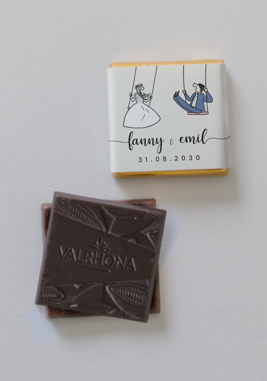 - De délicieux carrés de chocolats de la marque Valrhona, à personnaliser avec le visuel de votre choix.