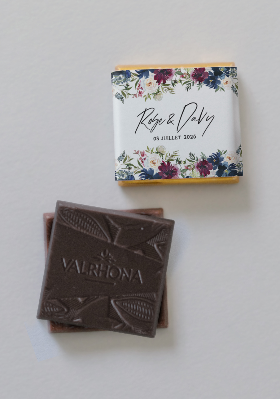- De délicieux carrés de chocolats de la marque Valrhona, à personnaliser avec le visuel de votre choix.