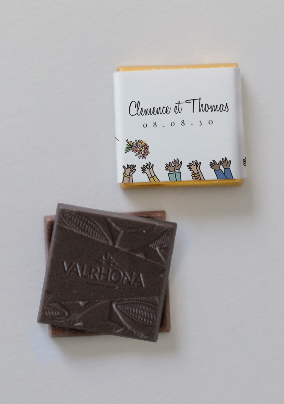 - De délicieux carrés de chocolats de la marque Valrhona, à personnaliser avec le visuel de votre choix.