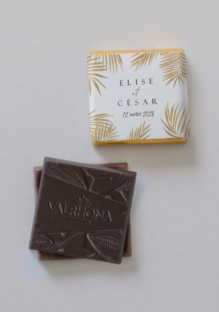 - De délicieux carrés de chocolats de la marque Valrhona, à personnaliser avec le visuel de votre choix.