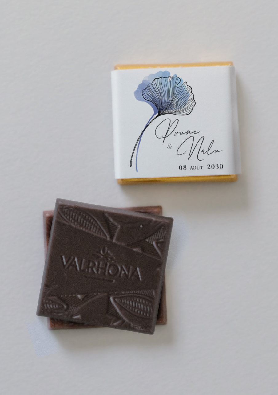 - De délicieux carrés de chocolats de la marque Valrhona, à personnaliser avec le visuel de votre choix.