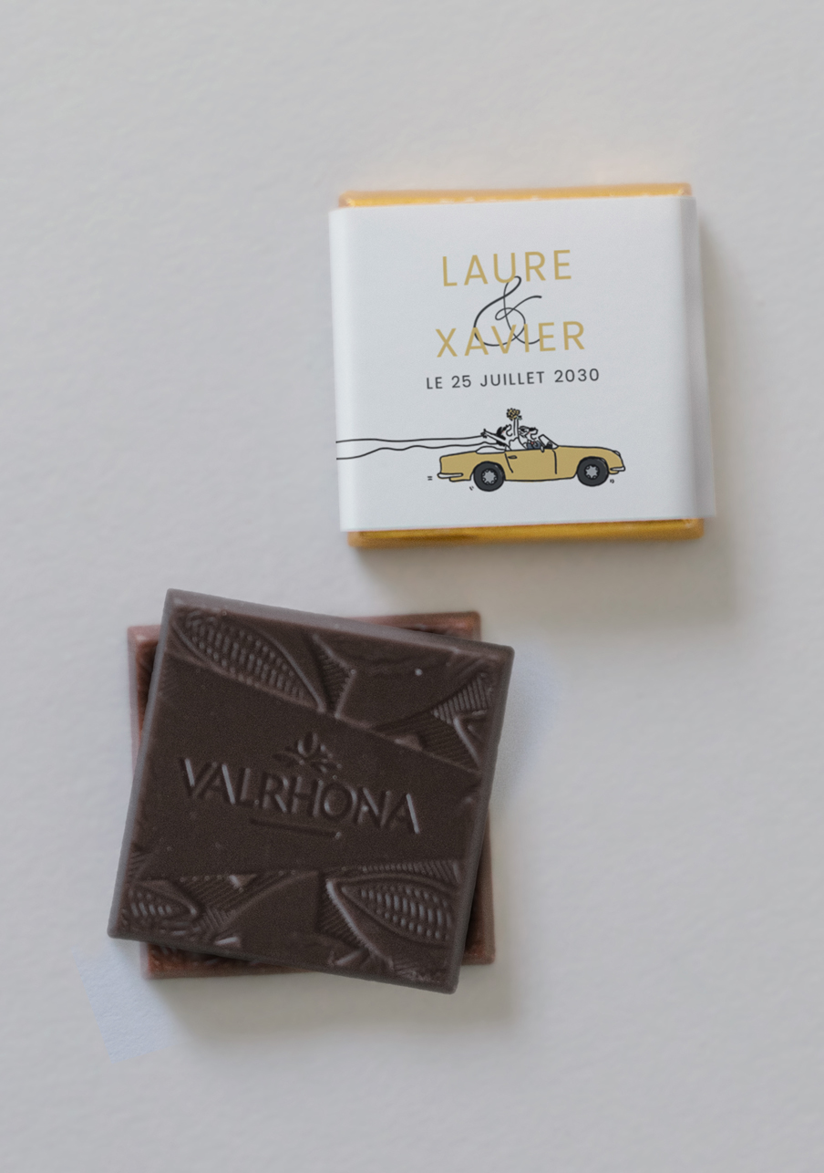 - De délicieux carrés de chocolats de la marque Valrhona, à personnaliser avec le visuel de votre choix.
