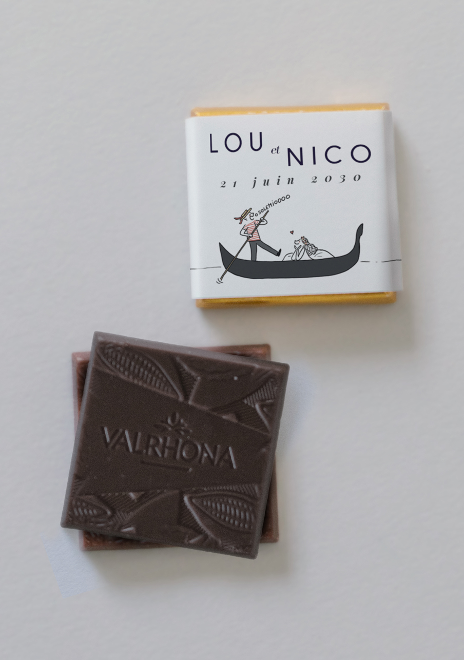 - De délicieux carrés de chocolats de la marque Valrhona, à personnaliser avec le visuel de votre choix.