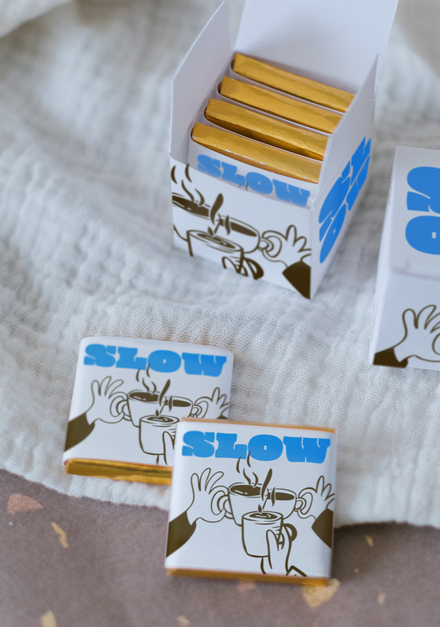 - De délicieux carrés de chocolats de la marque Valrhona, à personnaliser avec le visuel de votre choix.