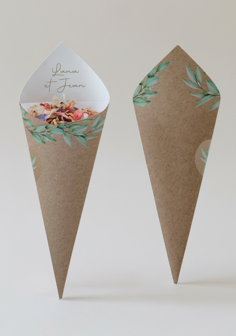 Gobelet personnalisé mariage Feuilles kraft
