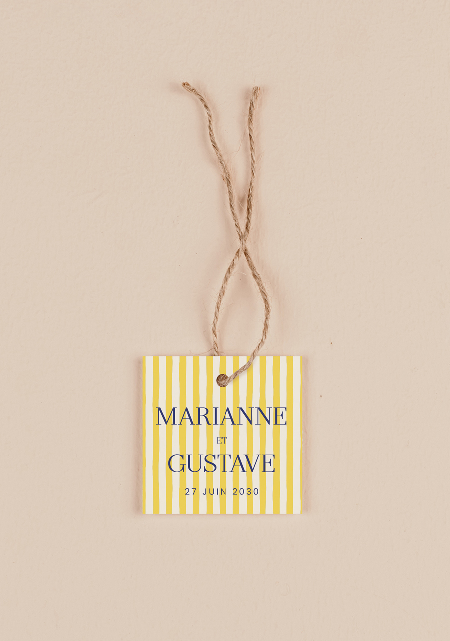 Bougie de mariage personnalisée blanche Stripes Jaune