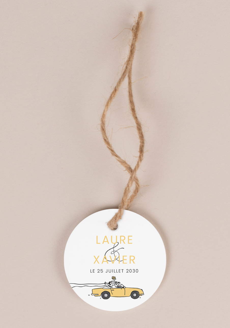 Étiquettes carrées mariage Décapotable