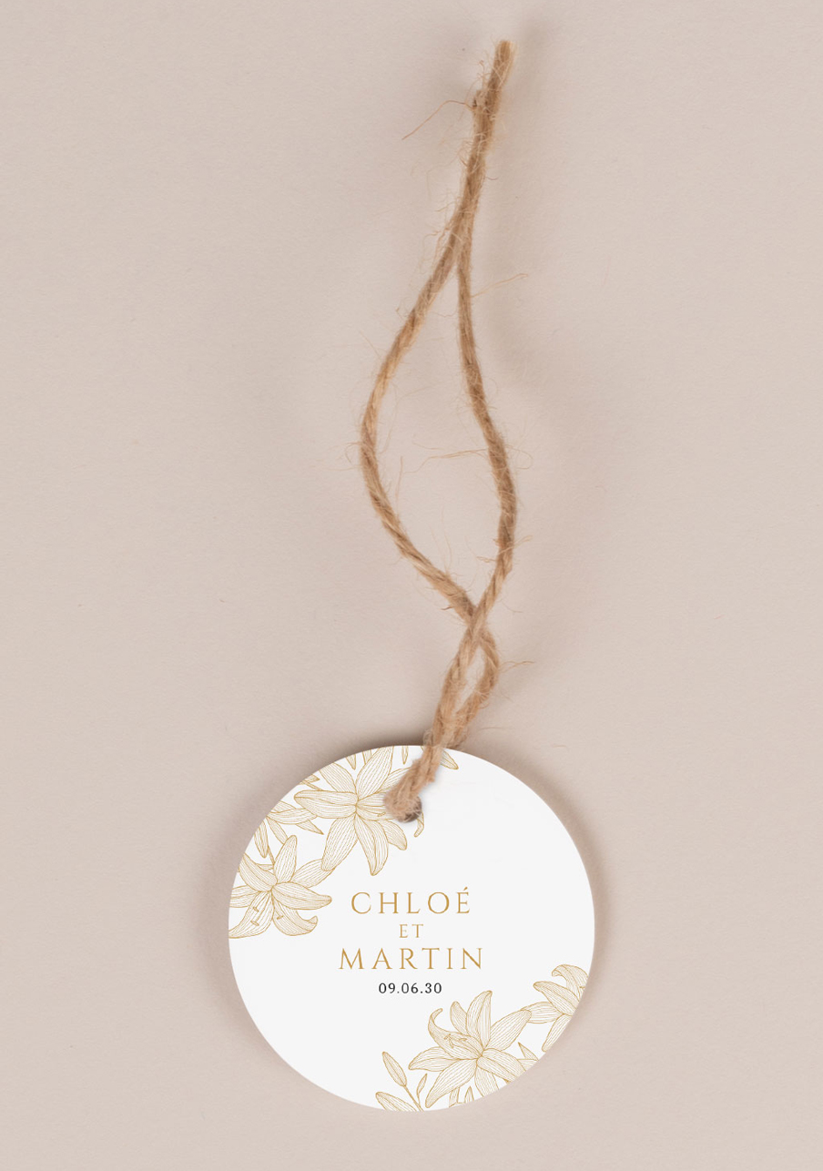 Merci à petits mariages entre amis, nous voulions un cadeau chic et sobre, les étiquettes ont parfaitement fait le job et complètement dans notre thème chic et fleuri!