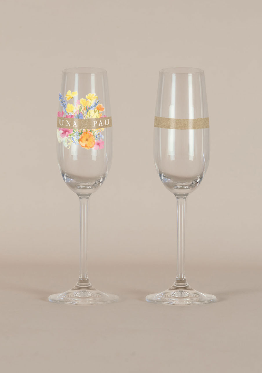 Ces flûtes ont une jolie forme et la gravure rend bien. Je les ai montrées au traiteur qui a paru surpris. ce n'est pas un modèle qu'il doit voir couramment. Je lui ai donné les coordonnées du site. Vraiment parfait pour donner à mes invités.