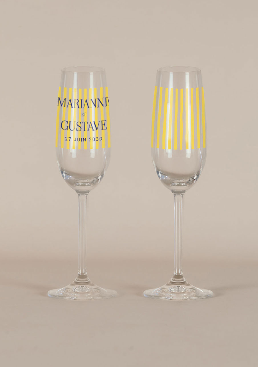 Bougie de mariage personnalisée ambrées Stripes Jaune