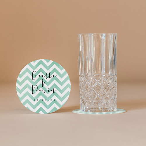 Vous cherchez une idée géniale pour gâter vos invités ? Oui mais voilà, pas question de se la jouer traditionnel avec les dragées ou de leur offrir un gadget qui finira rapidement à la poubelle. Petit Mariage entre Amis a la solution qu’il vous faut : un gobelet de mariage personnalisable. Il vous suffit de communiquer à l’équipe vos prénoms ou initiales et la date de votre mariage et nous nous chargeons du reste. Il vous faut néanmoins choisir le modèle (motif et couleur) qui vous séduit le plus. Ce gobelet personnalisable chevron bleu est particulièrement tendance. On aime son motif géométrique dans l’air du temps et les teintes de bleu particulièrement profondes qu’il arbore. Quant à la police d’écriture choisie… Impossible de lui résister ! Alors, vous vous laissez tenter ? Ce sont vos invités de mariage qui vont être ravis…