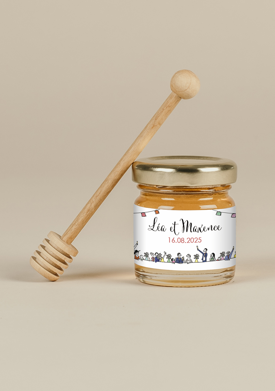 - Un miel de qualité issu de l'Agriculture Biologique à offrir en petits pots personnalisés à vos invités.