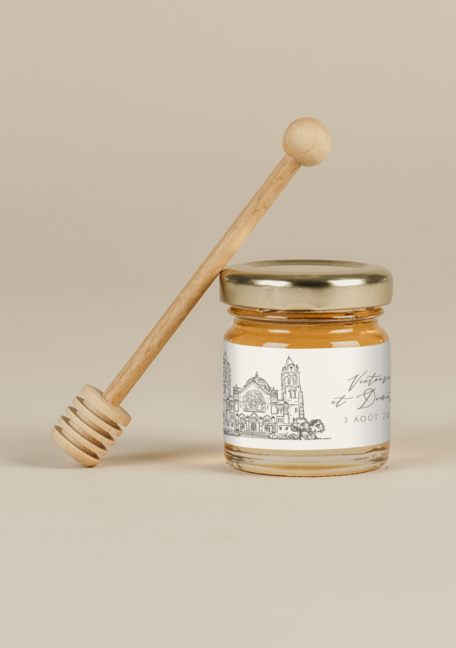 - Un miel de qualité issu de l'Agriculture Biologique à offrir en petits pots personnalisés à vos invités.