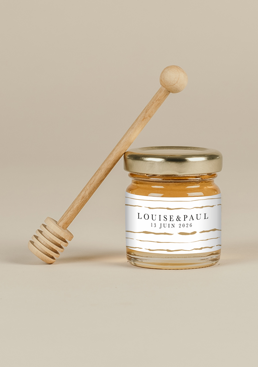 - Un miel de qualité issu de l'Agriculture Biologique à offrir en petits pots personnalisés à vos invités.
