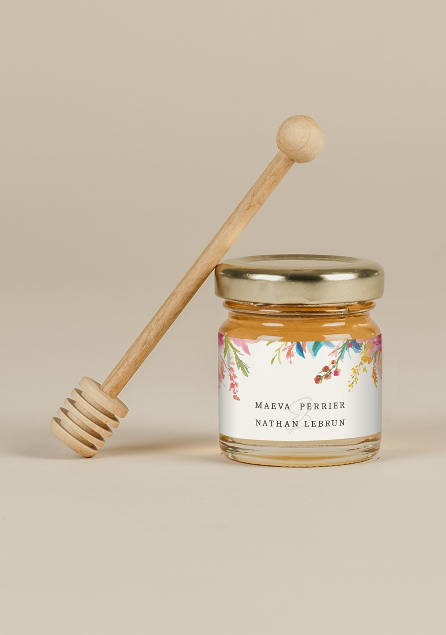 - Un miel de qualité issu de l'Agriculture Biologique à offrir en petits pots personnalisés à vos invités.