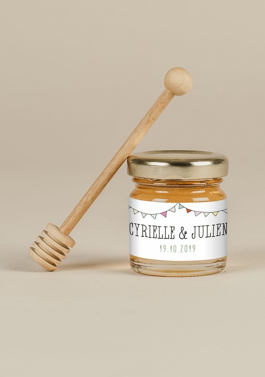 - Un miel de qualité issu de l'Agriculture Biologique à offrir en petits pots personnalisés à vos invités.
