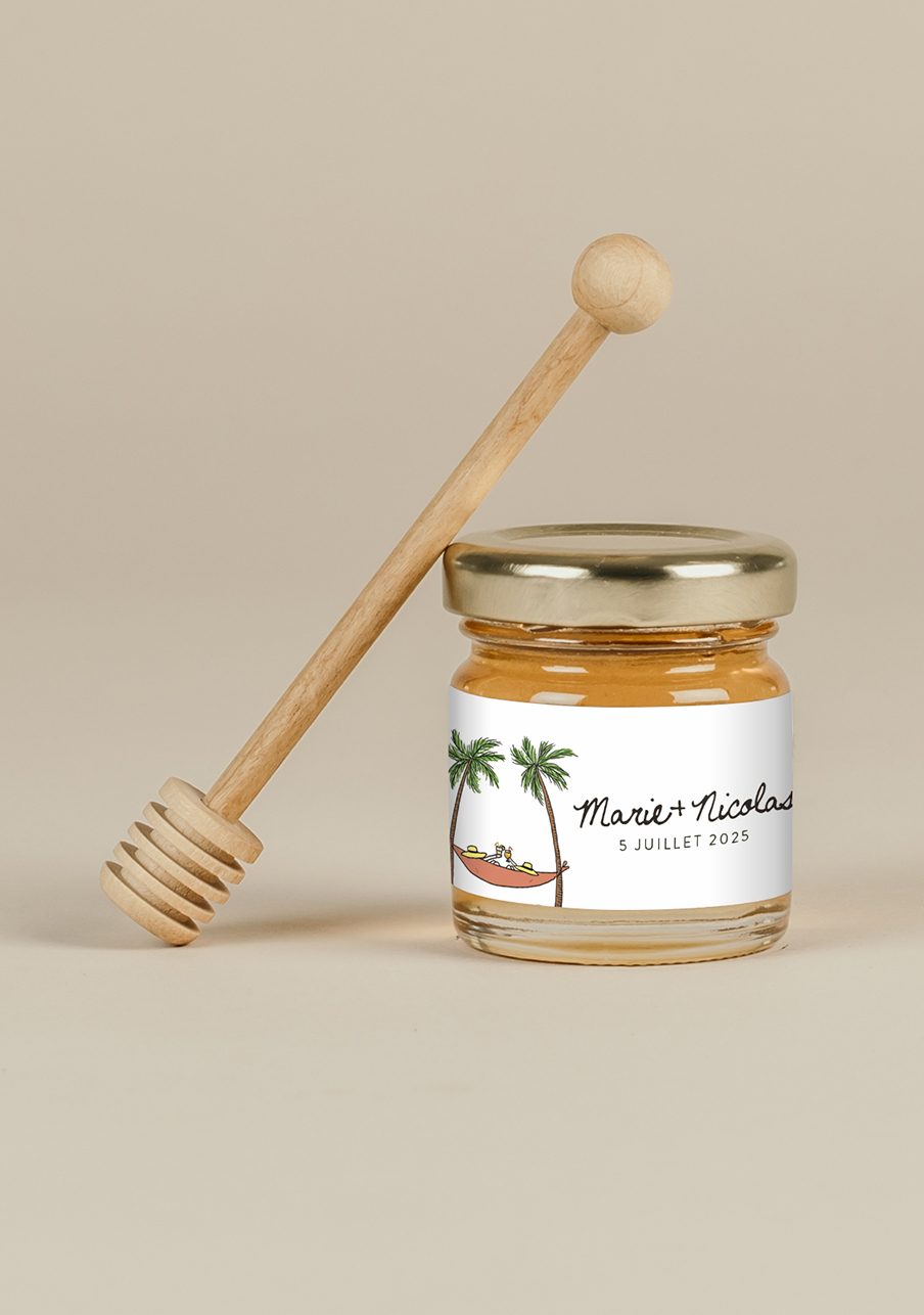 - Un miel de qualité issu de l'Agriculture Biologique à offrir en petits pots personnalisés à vos invités.