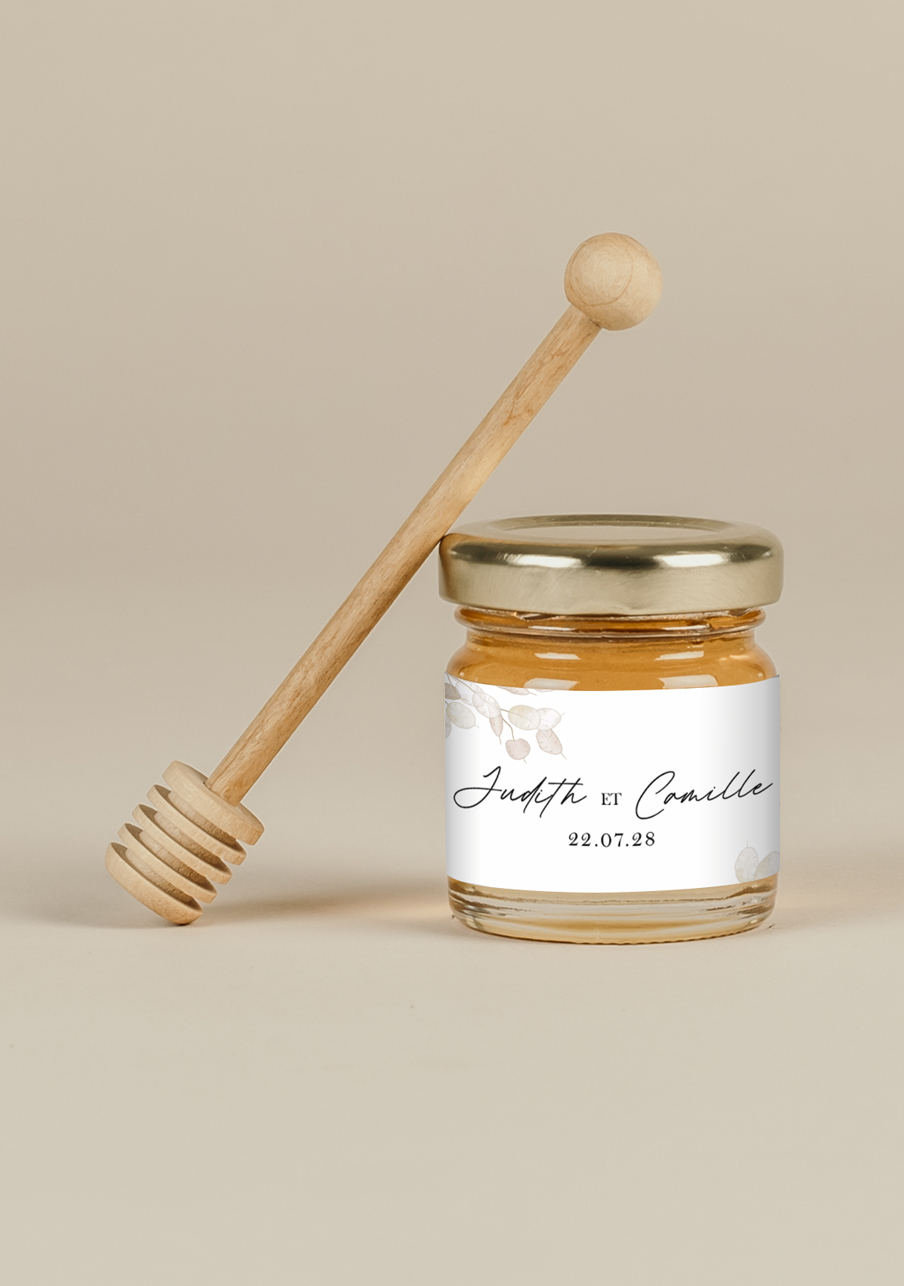 - Un miel de qualité issu de l'Agriculture Biologique à offrir en petits pots personnalisés à vos invités.