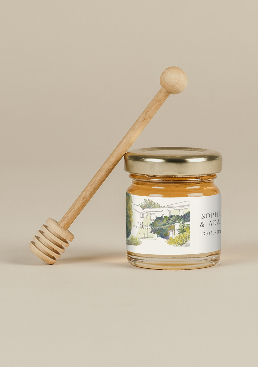 - Un miel de qualité issu de l'Agriculture Biologique à offrir en petits pots personnalisés à vos invités.