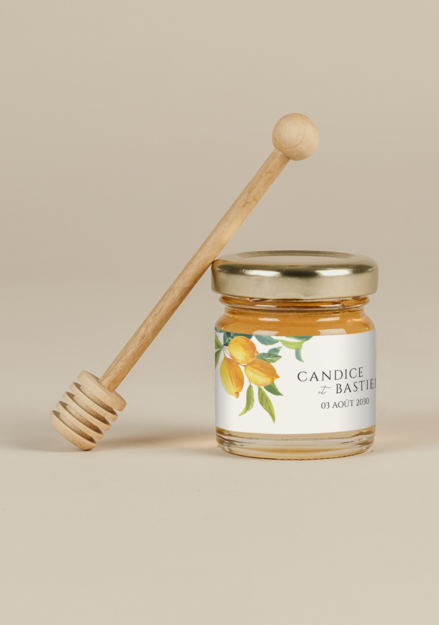 - Un miel de qualité issu de l'Agriculture Biologique à offrir en petits pots personnalisés à vos invités.