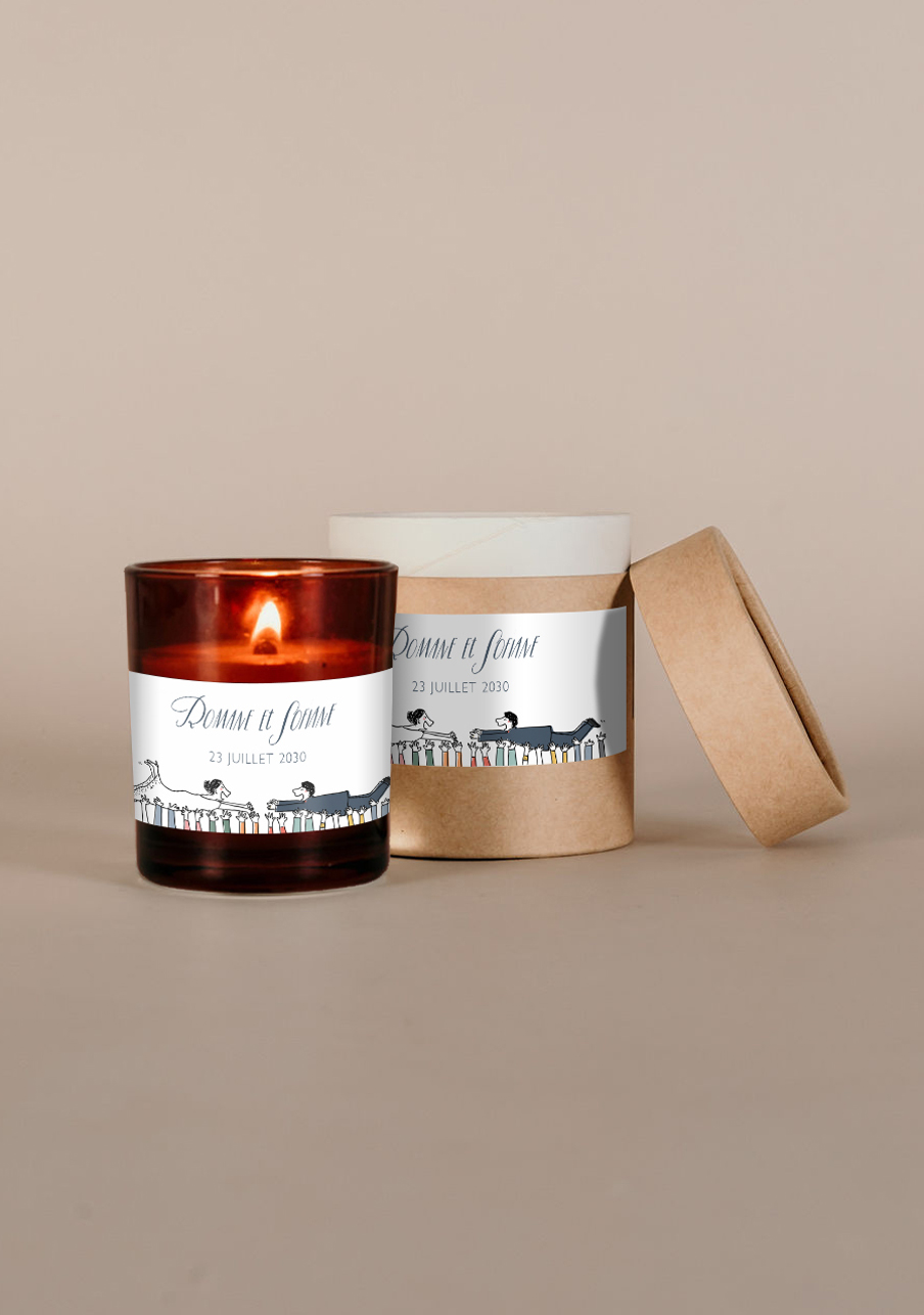 - Optez pour un cadeau élégant avec ces petites bougies en verre ambrées présentées dans leur jolie boîte en kraft et personnalisées avec leurs étiquettes.