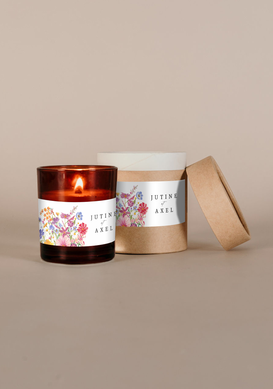 - Optez pour un cadeau élégant avec ces petites bougies en verre ambrées présentées dans leur jolie boîte en kraft et personnalisées avec leurs étiquettes.