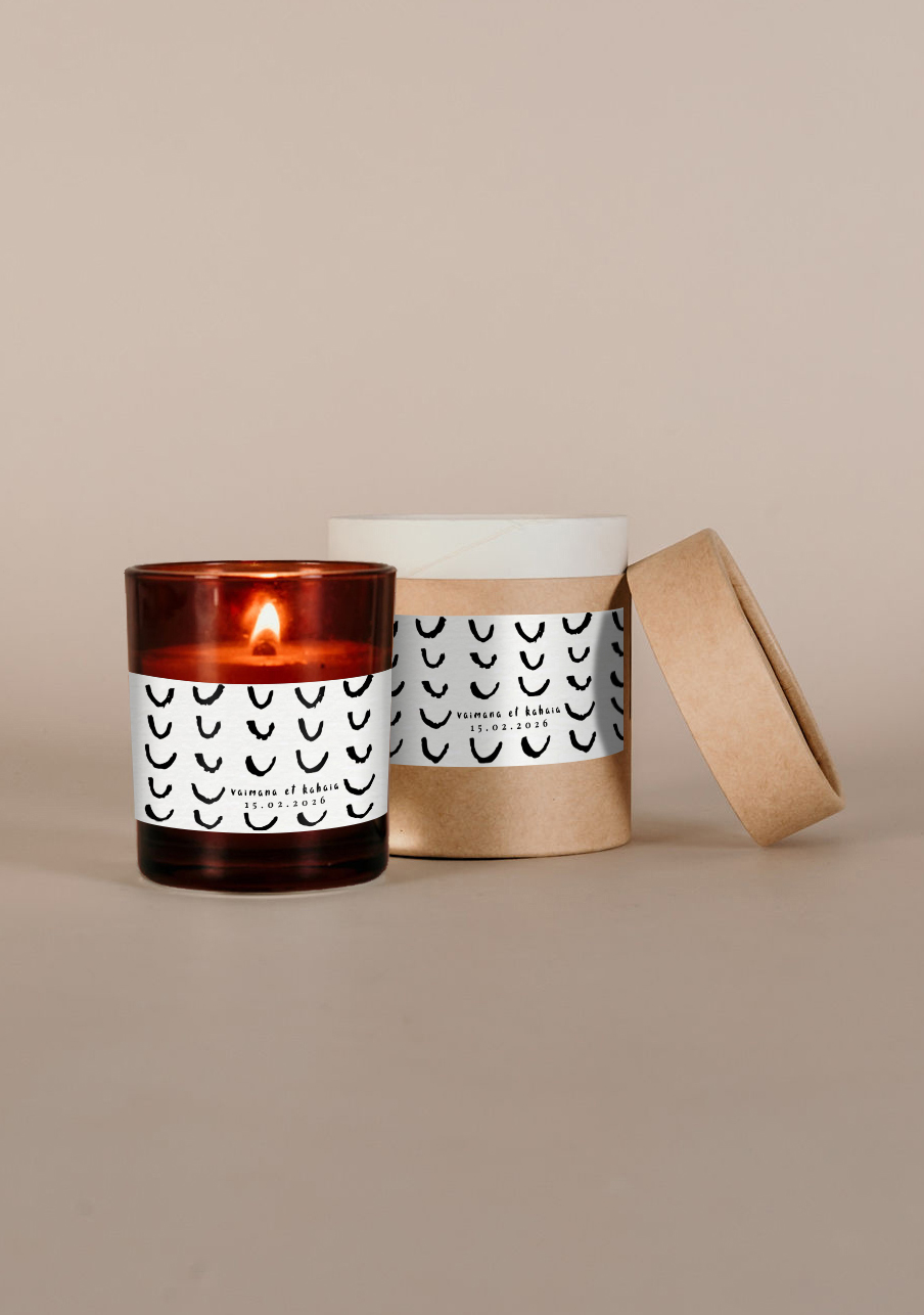 - Optez pour un cadeau élégant avec ces petites bougies en verre ambrées présentées dans leur jolie boîte en kraft et personnalisées avec leurs étiquettes.