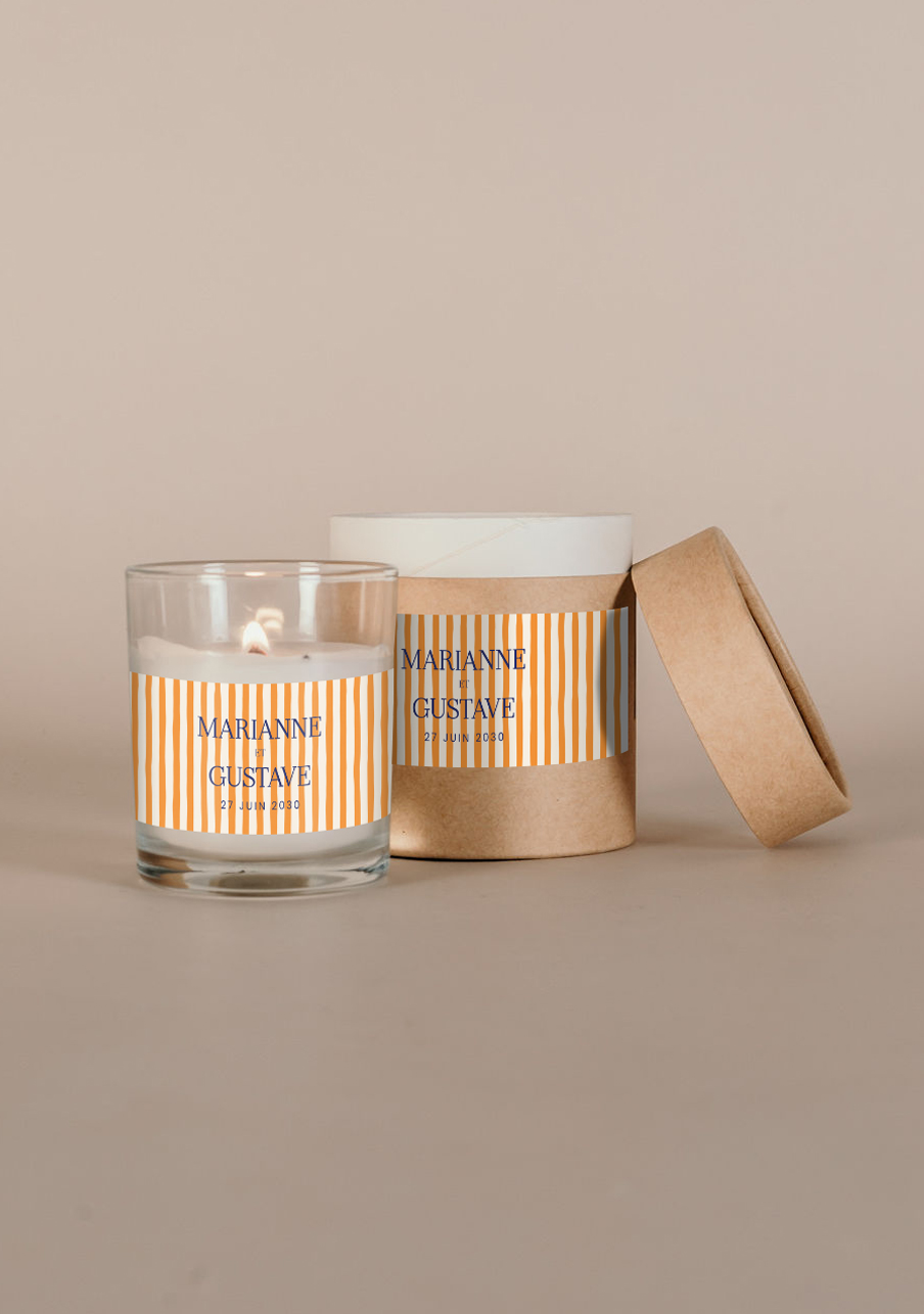 Bougie de mariage personnalisée ambrées Stripes Orange