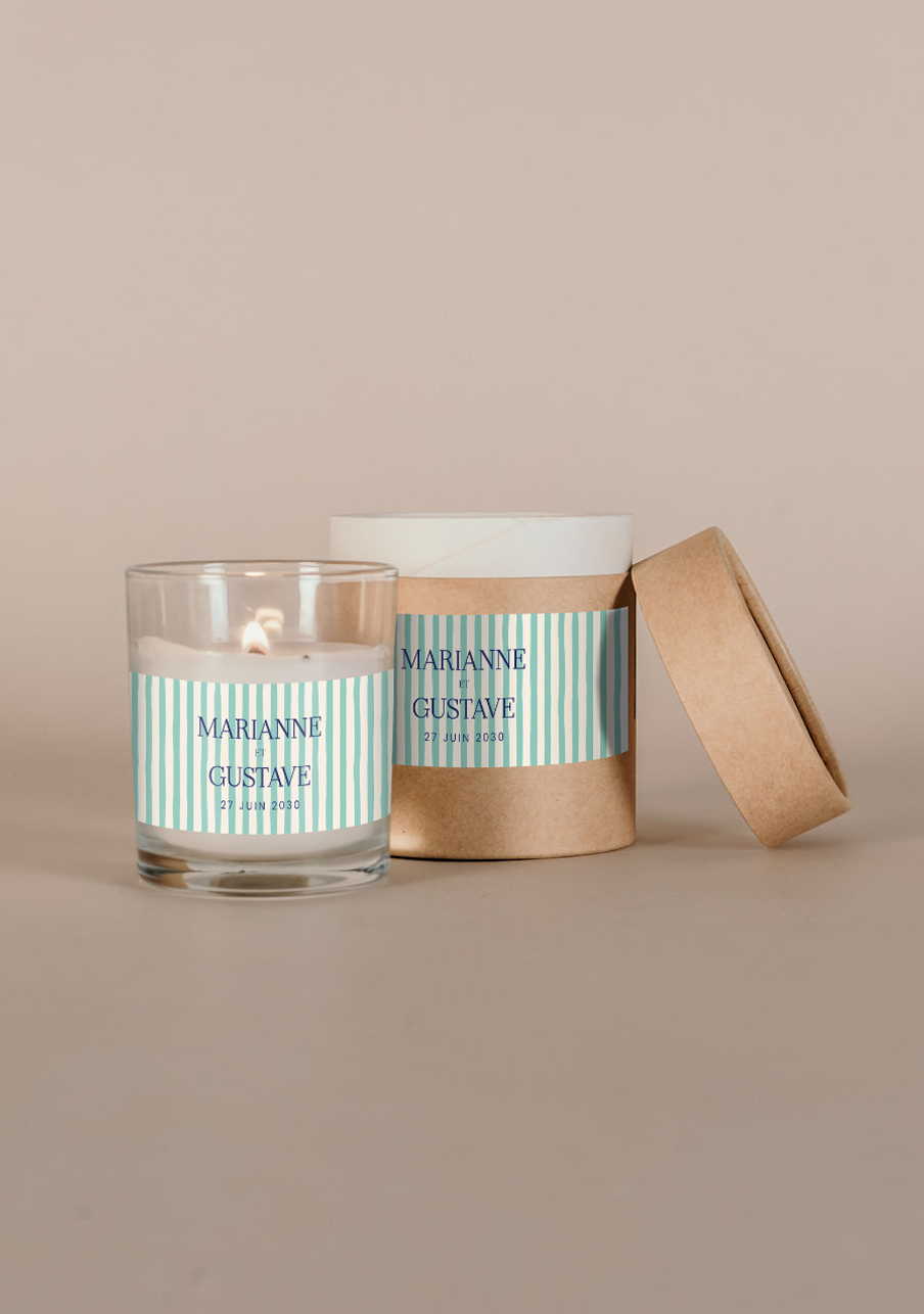 Bougie de mariage personnalisée ambrées Stripes Vert
