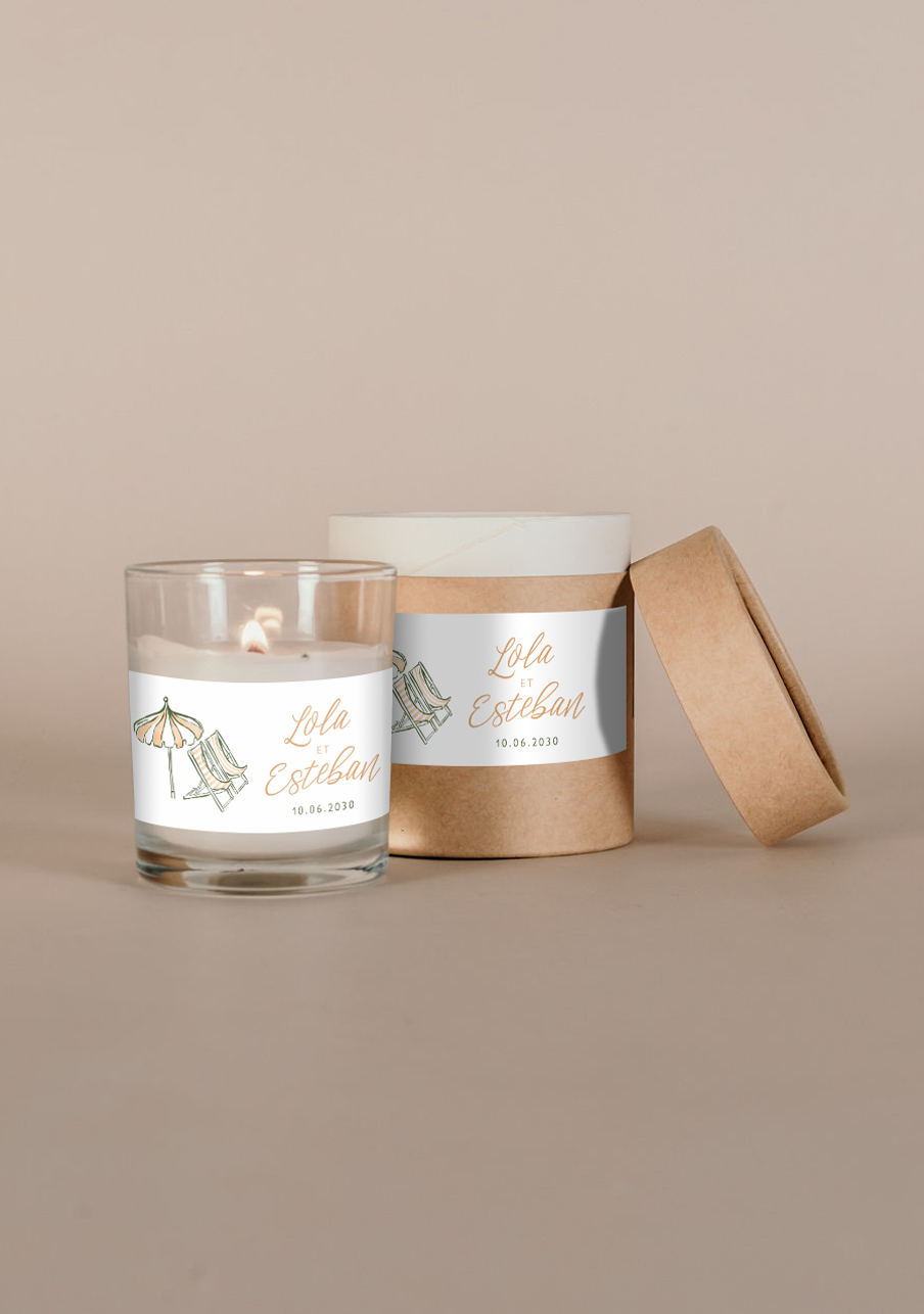 - Optez pour un cadeau élégant avec ces petites bougies en verre présentées dans leur jolie boîte en kraft et personnalisées avec leurs étiquettes.