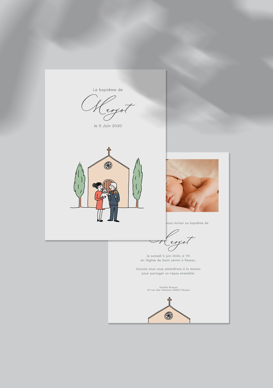 - Carton réponse (en option) : 14.8 x 10.5 cm en papier Olin mat 300gr blanc naturel (lisse) ou Rives Tradition 320gr
