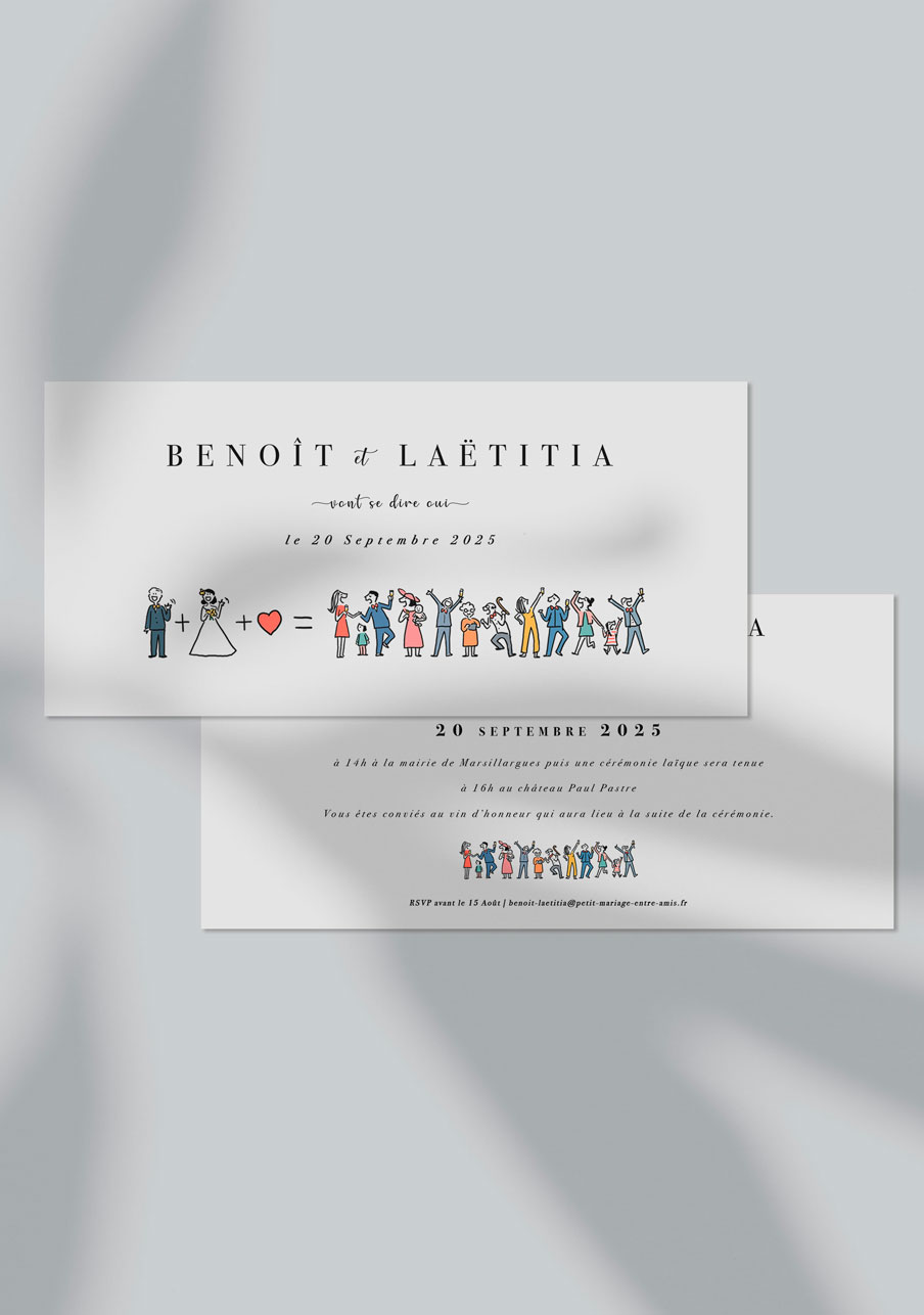 - Carton réponse (en option) : 14.8 x 10.5 cm en papier Olin mat 300gr blanc naturel (lisse) ou Rives Tradition 320gr