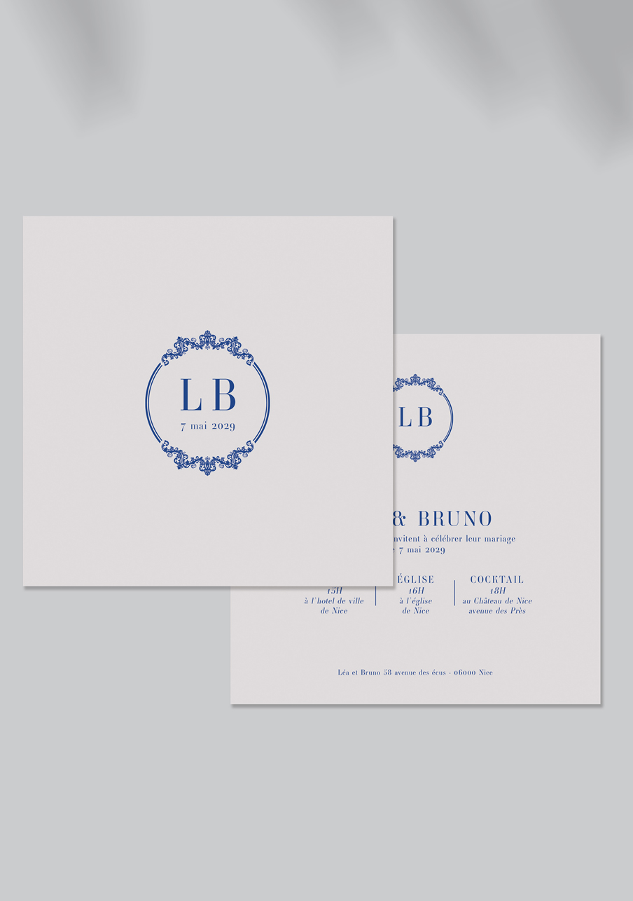 - Carton réponse (en option) : 14.8 x 10.5 cm en papier Olin mat 300gr blanc naturel (lisse) ou Rives Tradition 320gr