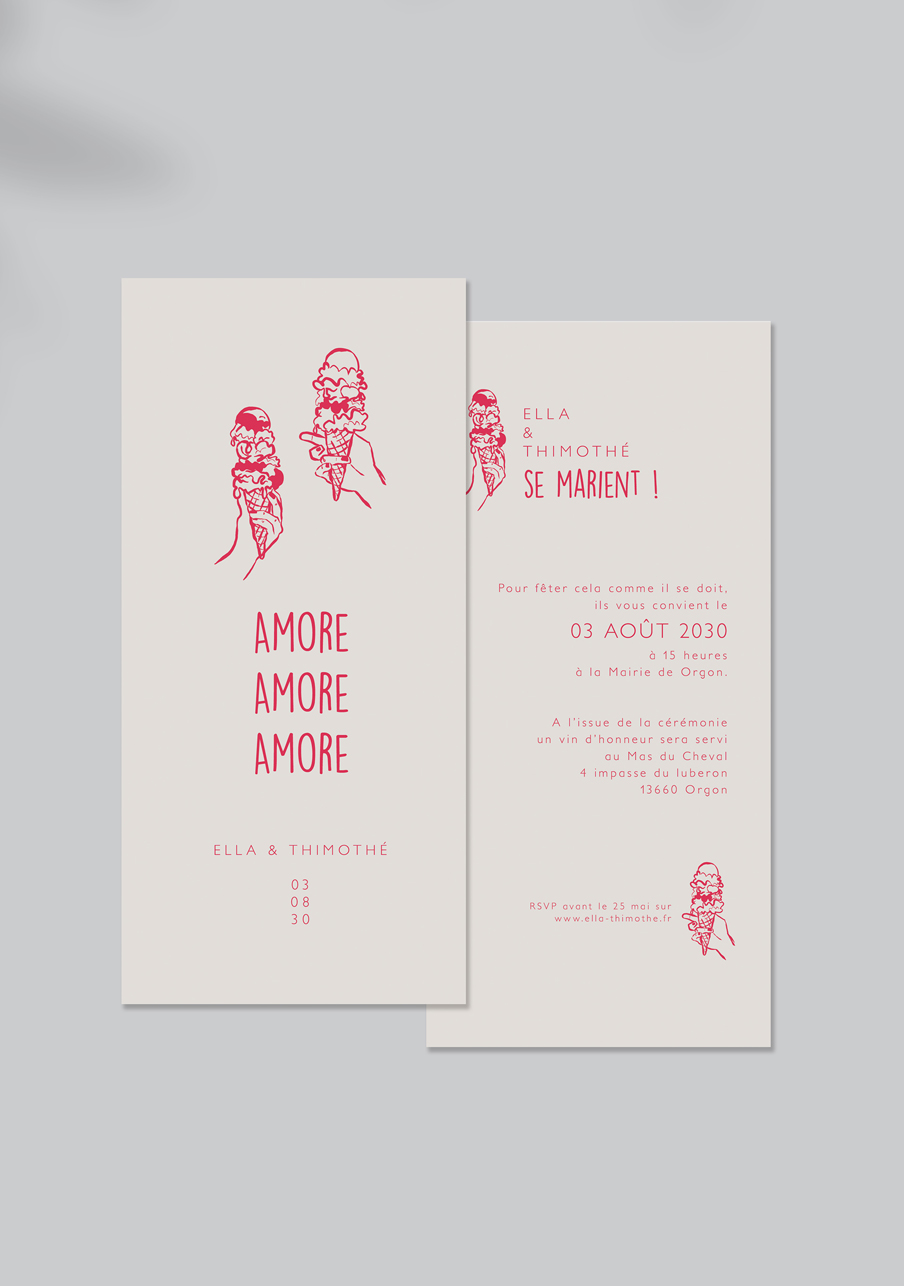 - Carton réponse (en option) : 14.8 x 10.5 cm en papier Olin mat 300gr blanc naturel (lisse) ou Rives Tradition 320gr