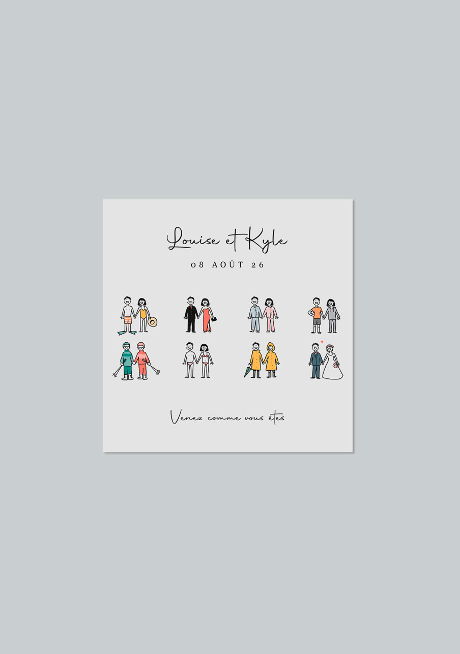 - Carton réponse (en option) : 14.8 x 10.5 cm en papier Olin mat 300gr blanc naturel (lisse) ou Rives Tradition 320gr