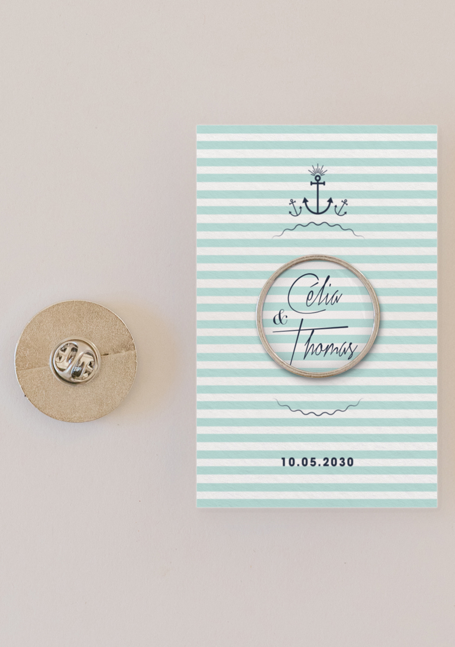 - Offrez à vos invités un pin’s personnalisé de mariage qui fera toute la différence : un petit accessoire tendance, élégant et totalement à votre image. Personnalisable avec vos prénoms, votre date et un visuel unique, ce pin’s devient un souvenir mémorable que chacun pourra conserver et porter. Un cadeau original, durable et irrésistible pour célébrer votre plus beau jour.