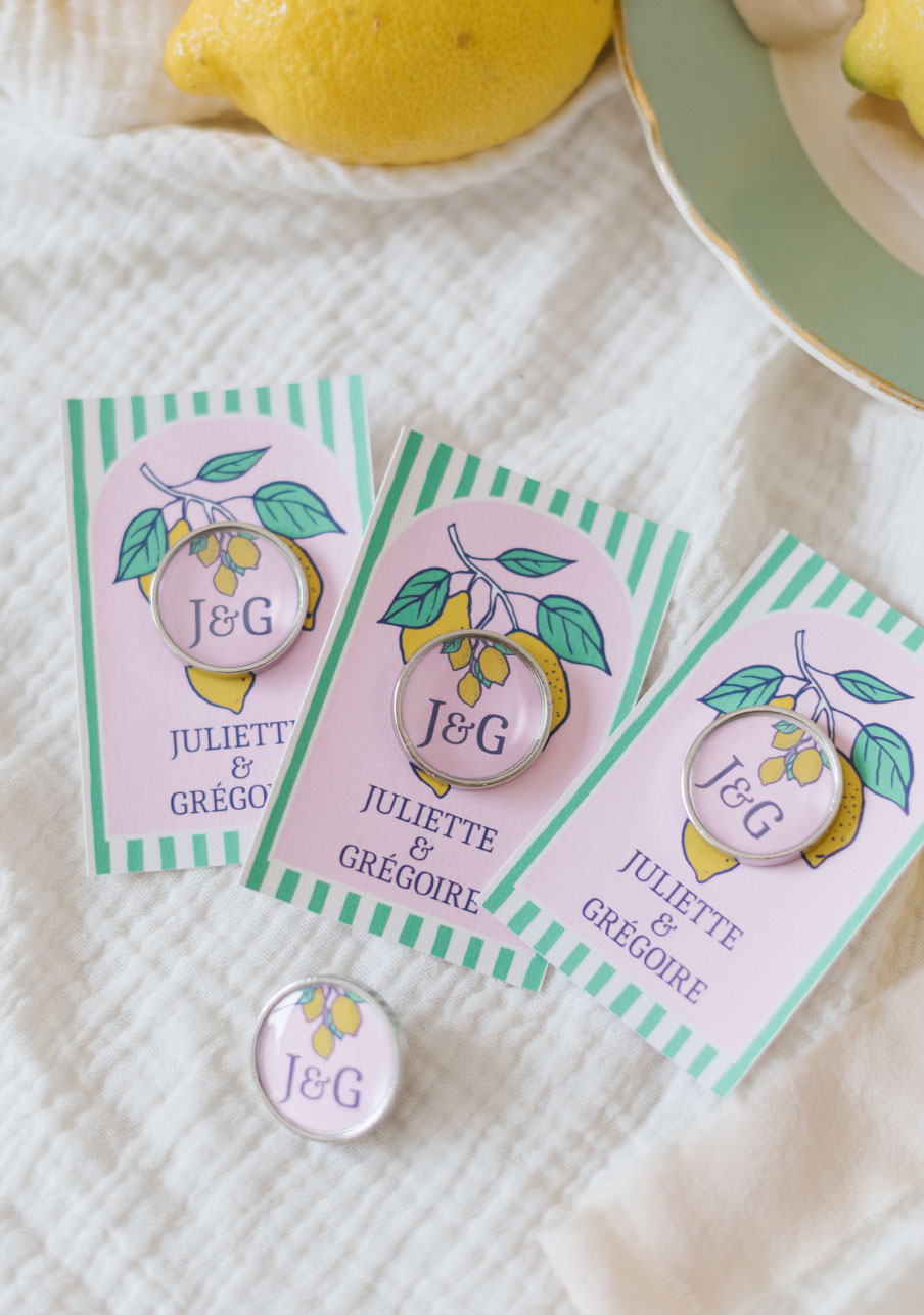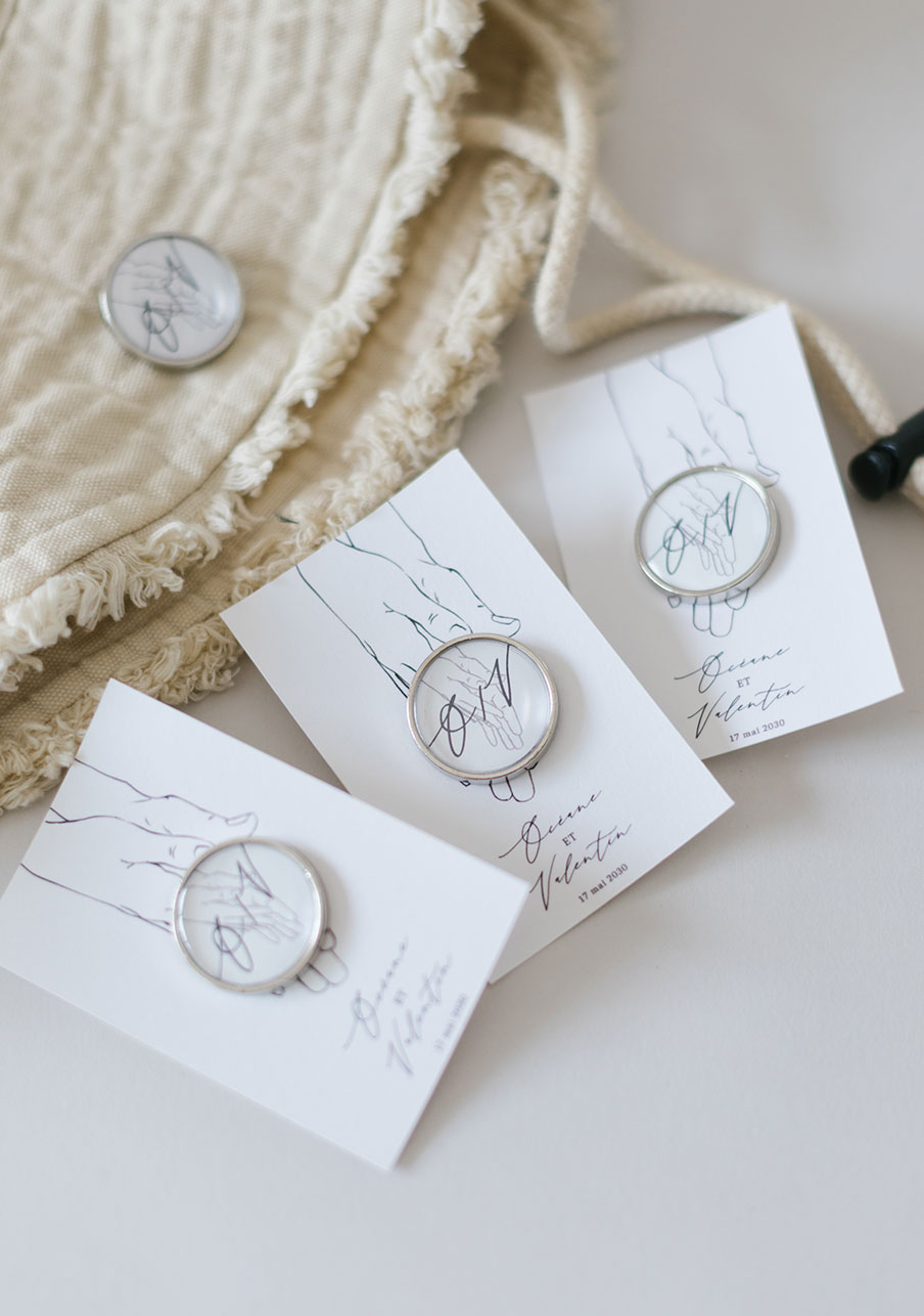 - Offrez à vos invités un pin’s personnalisé de mariage qui fera toute la différence : un petit accessoire tendance, élégant et totalement à votre image. Personnalisable avec vos prénoms, votre date et un visuel unique, ce pin’s devient un souvenir mémorable que chacun pourra conserver et porter. Un cadeau original, durable et irrésistible pour célébrer votre plus beau jour.