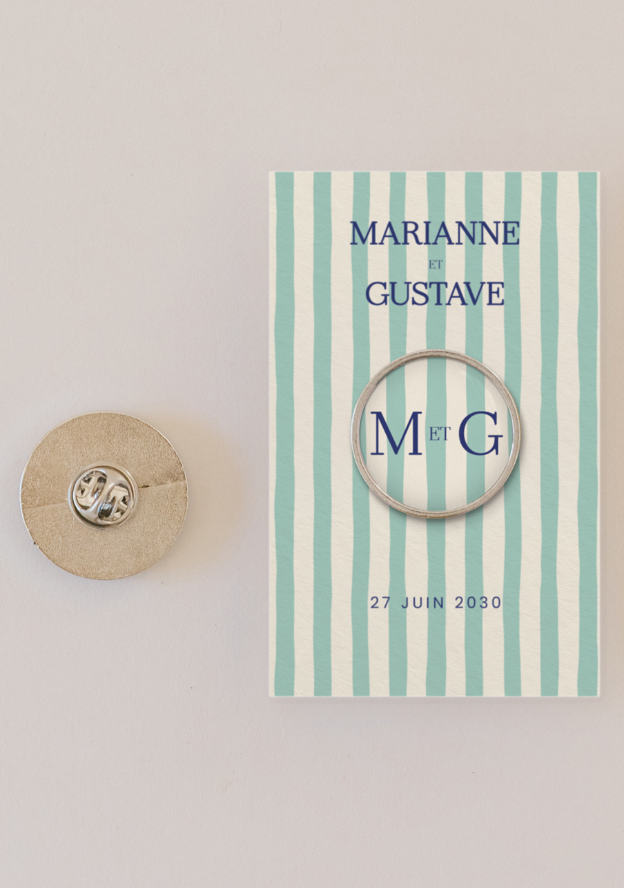 - Offrez à vos invités un pin’s personnalisé de mariage qui fera toute la différence : un petit accessoire tendance, élégant et totalement à votre image. Personnalisable avec vos prénoms, votre date et un visuel unique, ce pin’s devient un souvenir mémorable que chacun pourra conserver et porter. Un cadeau original, durable et irrésistible pour célébrer votre plus beau jour.