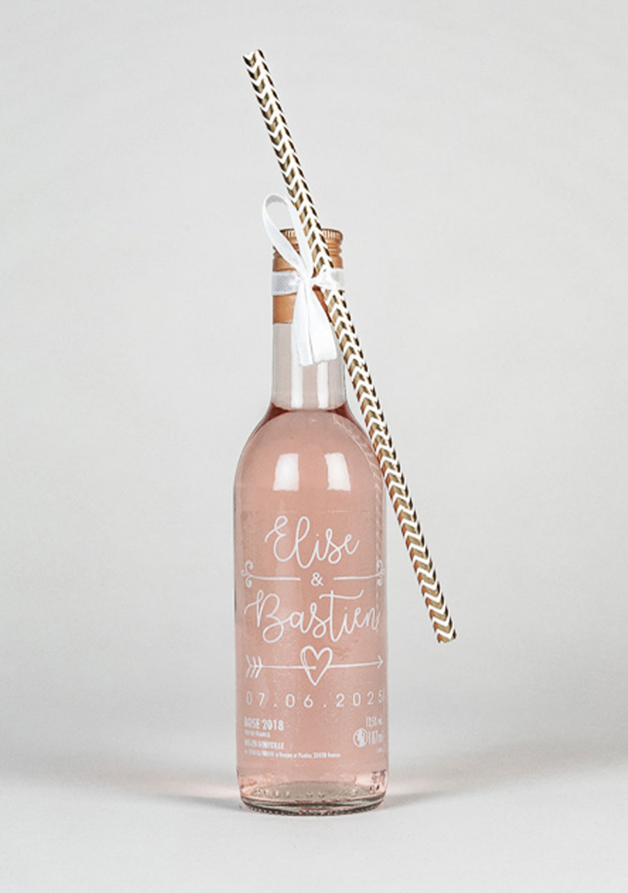 - Conditionnement : Carton contenant 24 bouteilles accompagnées de 24 pailles blanches ornées de chevrons dorés et d'un ruban effet satin de couleur crème et d'une longueur de 25 m