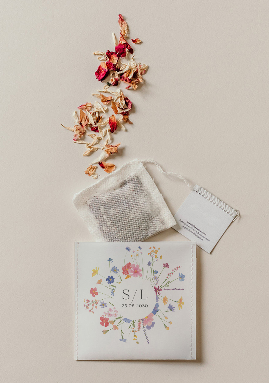 - Sachet biologiques et compostables : surenveloppe en papier texturé premium sourcé en UE et mousseline en coton biologique certifié Ecocert.