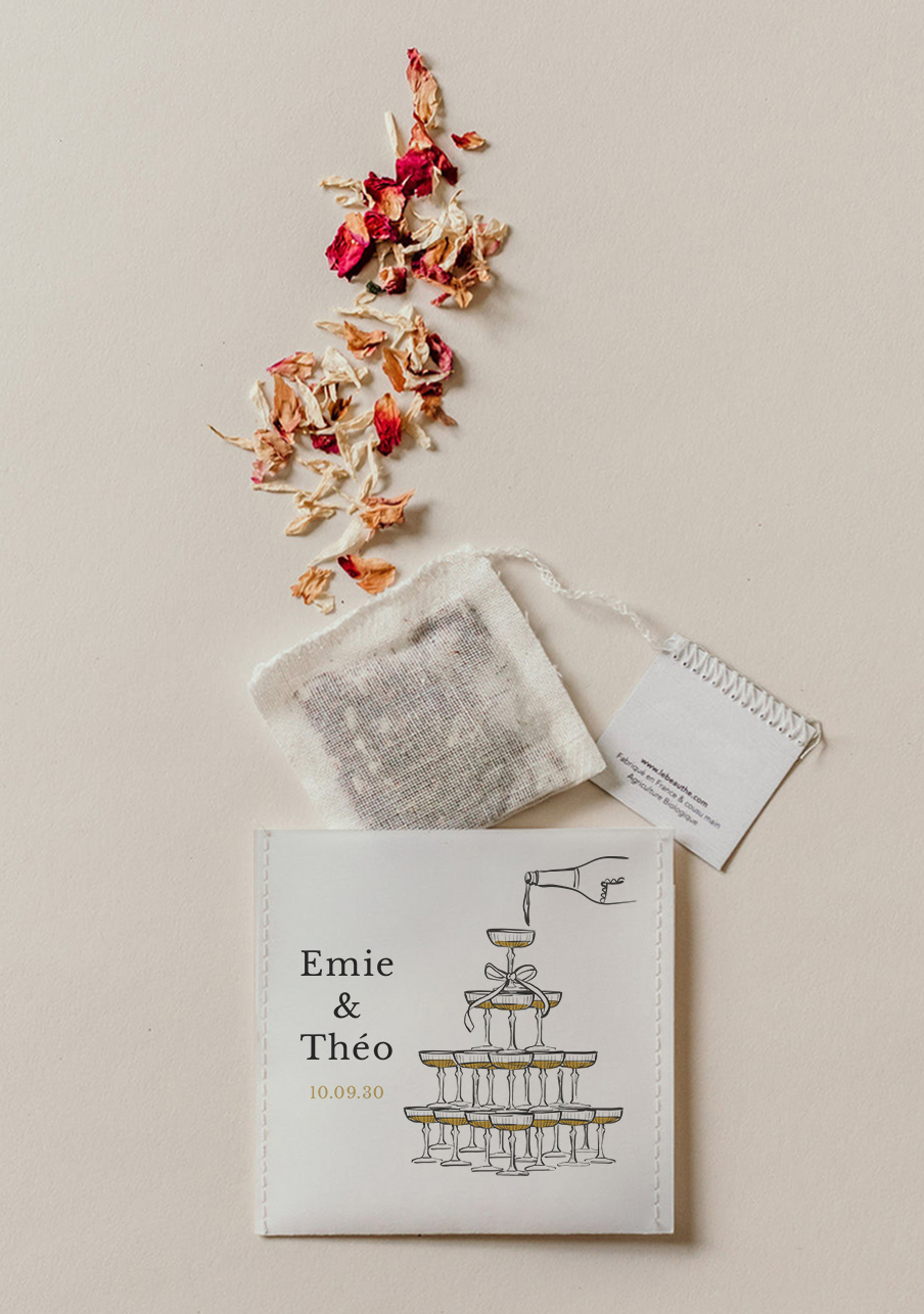 - Sachet biologiques et compostables : surenveloppe en papier texturé premium sourcé en UE et mousseline en coton biologique certifié Ecocert.