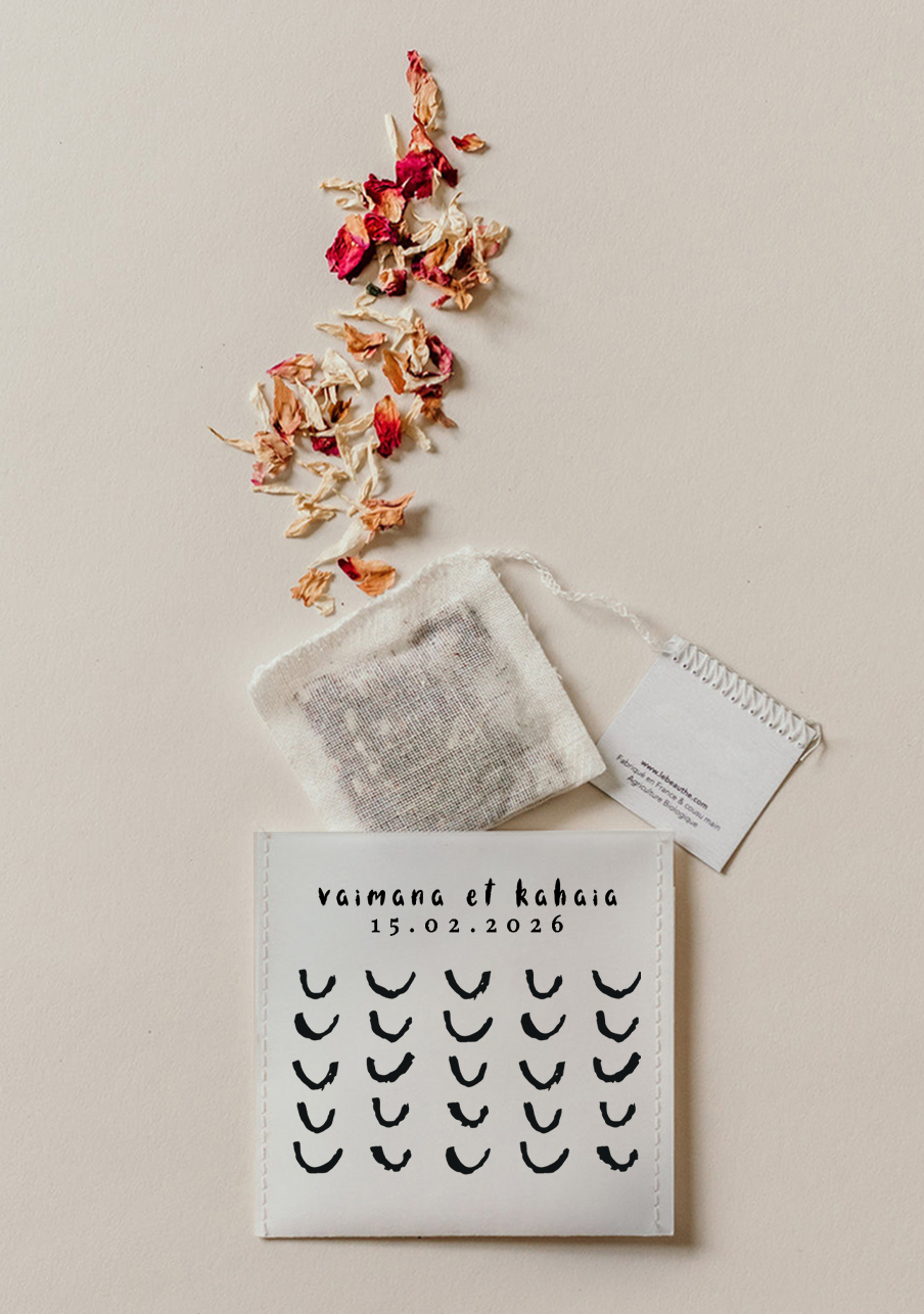 - Sachet biologiques et compostables : surenveloppe en papier texturé premium sourcé en UE et mousseline en coton biologique certifié Ecocert.