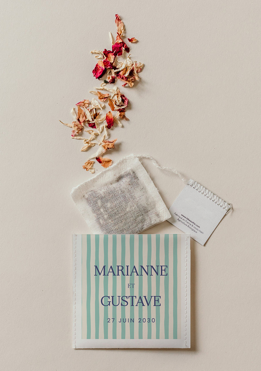 - Sachet biologiques et compostables : surenveloppe en papier texturé premium sourcé en UE et mousseline en coton biologique certifié Ecocert.