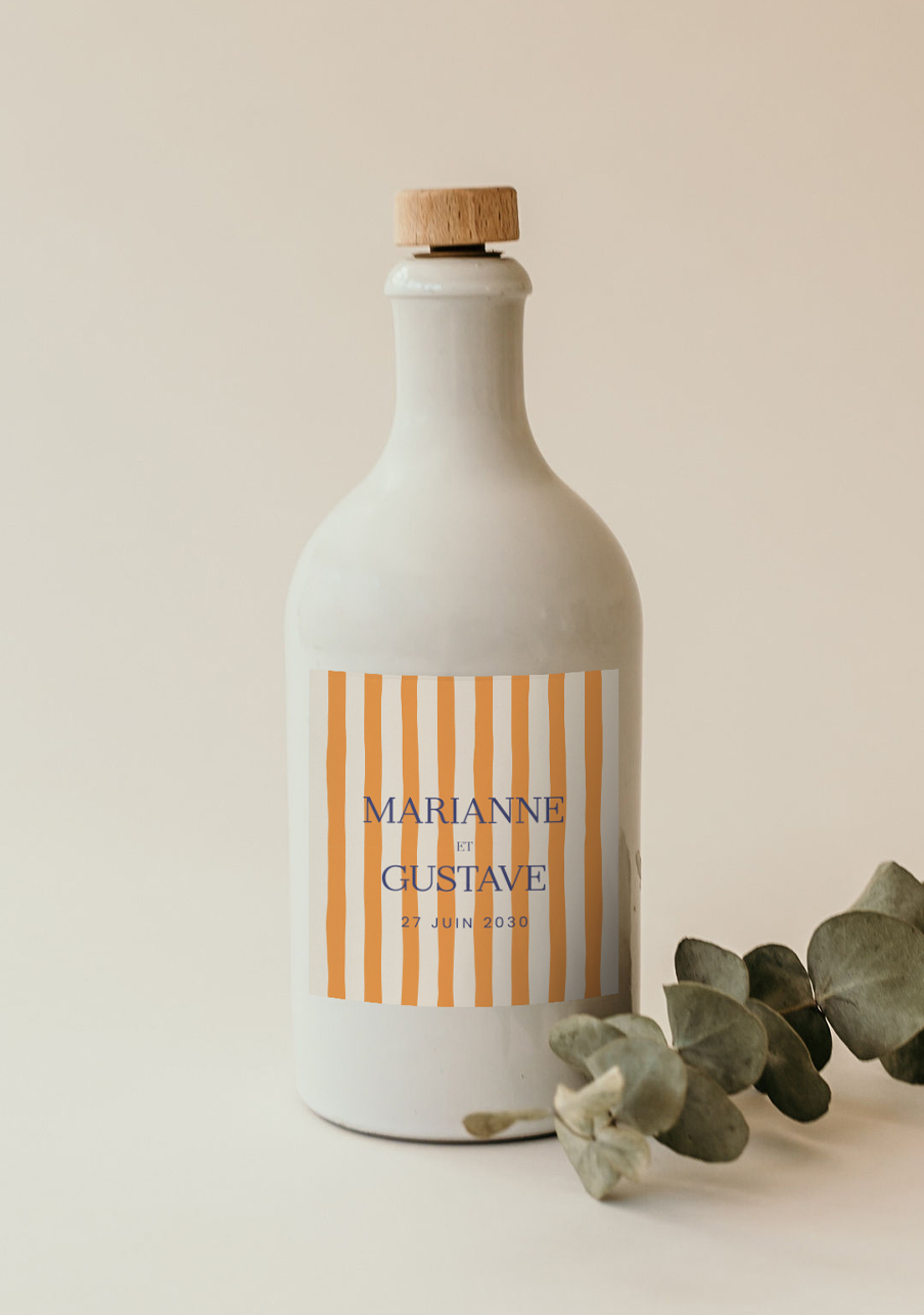 Bougie de mariage personnalisée ambrées Stripes Orange