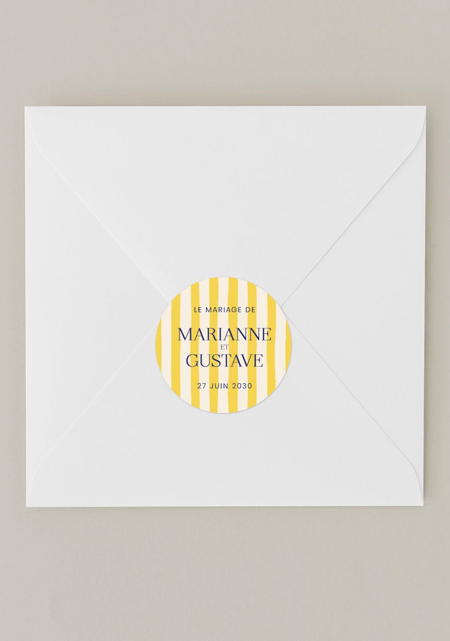 Sticker bougie mariage Stripes Jaune